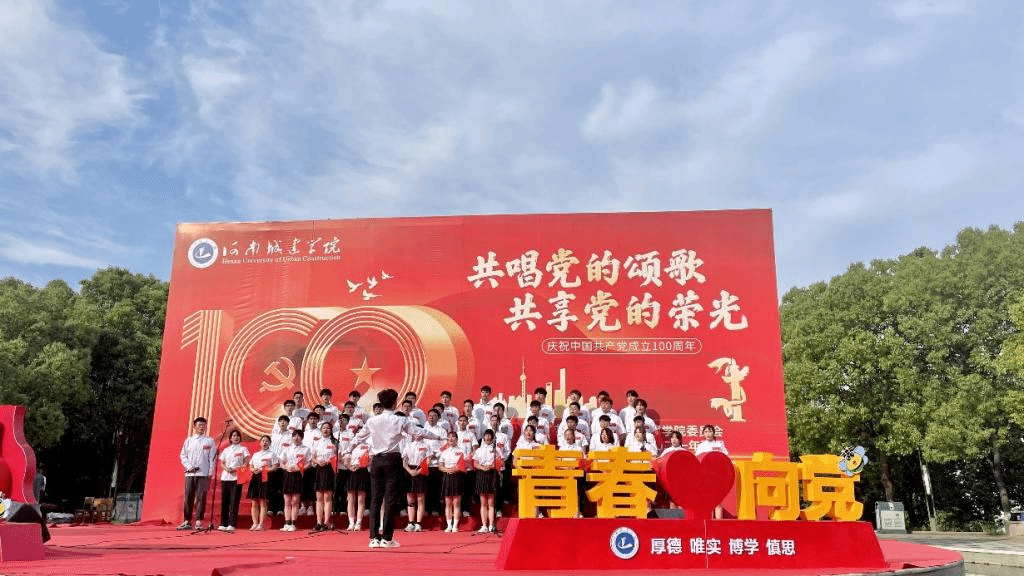 (通讯员 王紫阳)红歌嘹亮响彻校园,传承精神歌颂党恩。为庆祝中国共产党成立一百周年,将红色历史传入校园,牢记党的嘱托,争做时代青年。5月18日下午四时,河南城建学院于喷泉广场举办“共唱党的颂歌,共享党的荣光”红歌大赛。yl9193永利集团艺术团全体成员和各班学生代表参加这场比赛,yl9193永利集团党委副书记张星,辅导员宋梦茹出席本次活动。