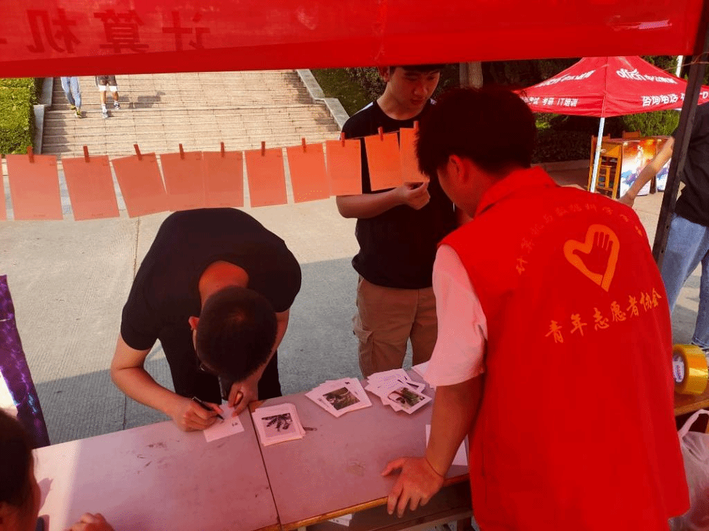 早上八点,志愿者们便在景观大道处早早搭下帐篷,做好各项准备工作。志愿者们为大家准备了精美的明信片,期待着同学们写下心中的祝愿,传递分享心中的美好。活动现场气氛热烈,来参加活动的同学们络绎不绝。同学们纷纷在卡片上写下了自己心里话,有的写下了对朋友美好的祝福,有的倾诉了生活中遇到的烦恼。随着时间的流逝,活动也接近尾声,同学们不仅在这里留下了美好祝福,也传递了温暖。落日将至,本次活动圆满完成。