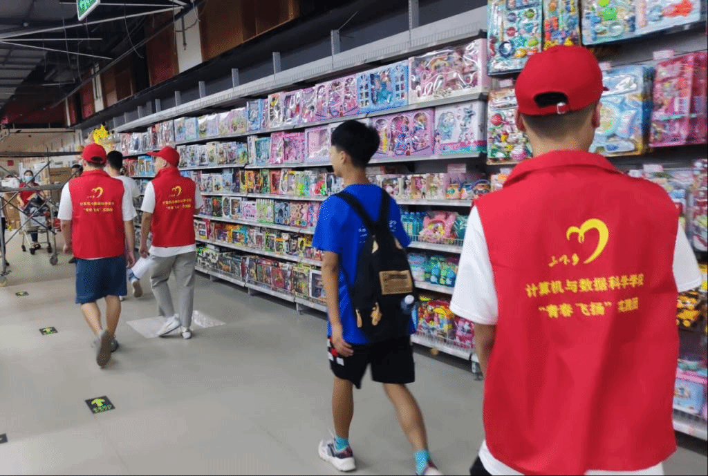 志愿者在王经理的带领下参观商超工作