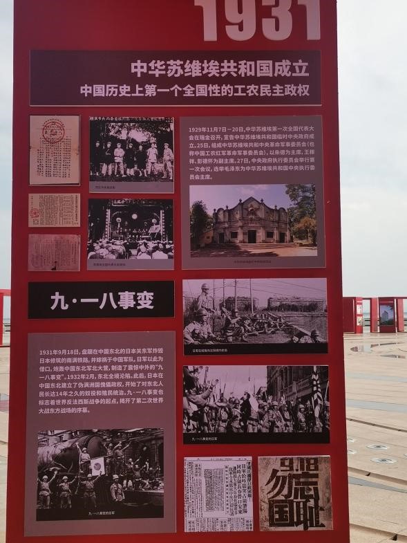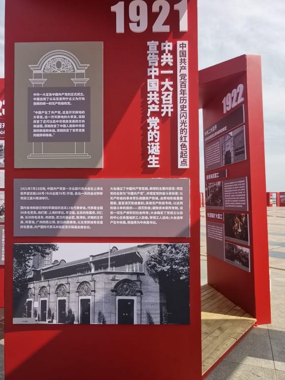 在2021年7月14日,“红旗少年”暑期实践服务队来到了位于平顶山市白龟湖湿地公园,据了解,白龟湖湿地公园为了庆祝中国共产党成立100周年举办了当时展览,在本次展览中,白龟湖中展示了1921年到2020年的国家大事,今天小队主要学习的是1921年到1945年抗日时期的党史。在1921年共产党成立,到1945年中,中国共产党与国民党分分合合,在抗日问题面前,国共合作共同抵御外敌,最后在1945年取得了抗日战争的胜利,日本列强宣布无条件投降。在白龟湖的展现中,我们能够很好地了解到中国共产党带领人民共同抵御外敌,也能深刻反映出中国共产党在抗日战争时期不懈奋斗、矢志不渝为人名的奋战历史。