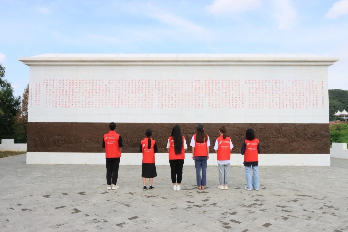 出发之前,志愿者团队通过查阅资料,了解历史得知1930年7月30日,在望夫石山下,中国工农红军第九军誓师成立。正值党的百年诞辰,为学习红色革命精神,新一代青年肩负起党和国家的重任,于是第一站志愿者们来到桐树庄党员群众综合服务中心,在与当地领导沟通交流说明来访目的后,领导非常高兴地带领志愿者参观中国工农红军第九军纪念馆。纪念馆内金灿灿的党徽,热血般的