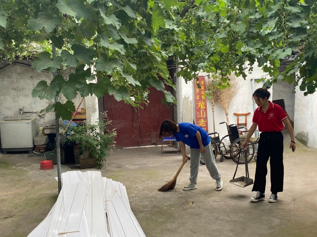 志愿者协助打扫公寓卫生(通讯员 韩俊蝶 摄)
