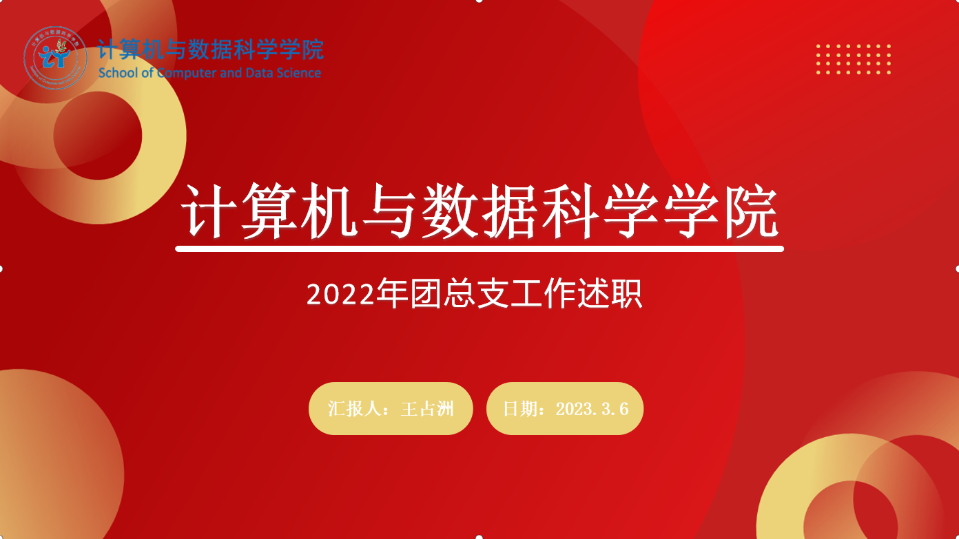 王占洲在2022年团总支工作总结中主要从四个方面进行了陈述,分别是学生思想的引领力、学生活动的组织力、学生生活的服务力和团总支工作对学院发展的贡献度,陈述详实,图文并茂,展现了我院2022年团总支工作的进展与成就。最后,计算机学院党委书记李宝宏肯定了2022年团总支的工作,同时希望在接下来的工作中要切实做到以党建带团建,党团组织紧密团结,增强党在青年学生中的号召力和影响力,扩大党团组织的凝聚力和战斗力。