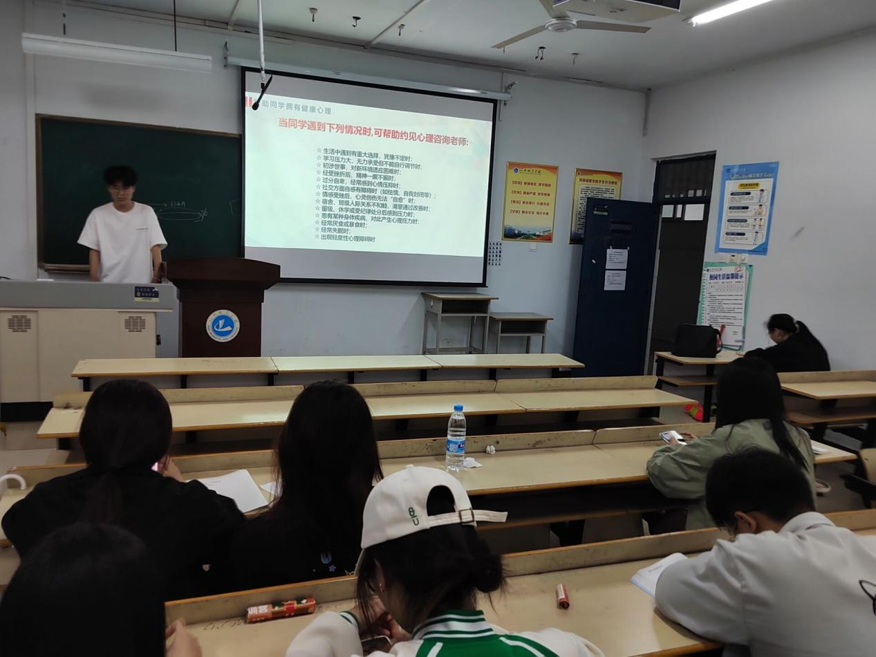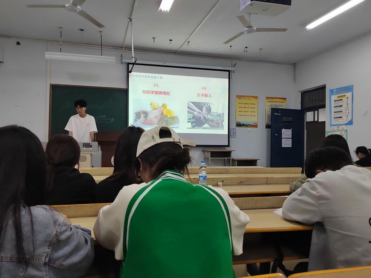 本次活动围绕“大学生心理健康概述”、“大学生常见心理问题”、“帮助同学拥有健康心理”等三个方面展开,结合世界卫生组织提出的心理健康概念、美国人本主义心理学家马斯洛提出的十条心理健康标准,从多角度、多方面进行分析和讲述,帮助同学们去学会倾听、换位思考、愉快相处、乐于助人。