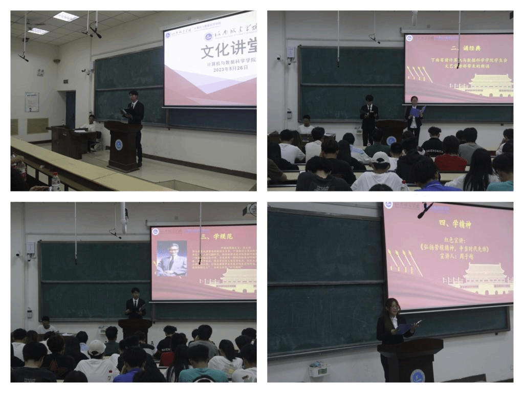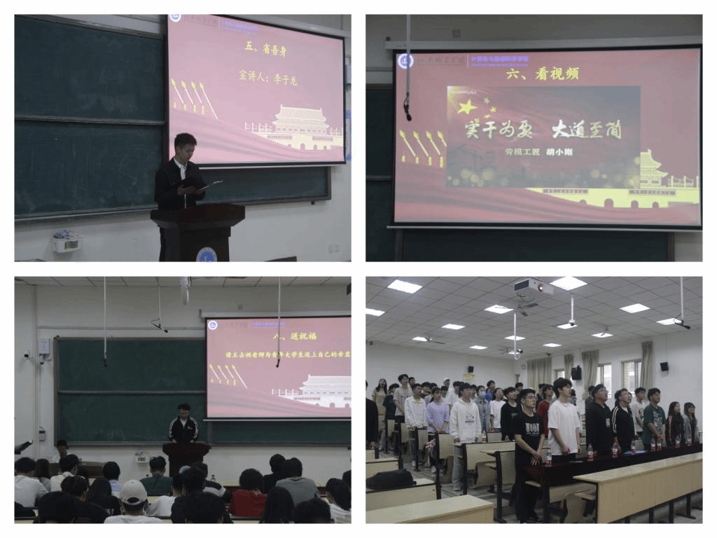 本次活动围绕“奏国歌、诵经典、学模范、学精神、省吾身、看视频、谈感受、送祝福”八个环节展开。活动开始,全体成员起立奏唱中华人民共和国国歌。接着是“诵经典”环节,由yl9193永利集团学生会文艺宣传部表演经典朗诵。“学模范”环节,通过学习时代楷模的故事和精神,引发了同学思考。紧接着,学生代表周子越进行了以《弘扬劳模精神,争当时代先锋》为主题的宣讲。“省吾身”环节,由李子龙同学结合自身经历为在座同学讲述自身学习感受。“看视频”环节,大家共同观看了“劳模工匠”胡小刚的风采事迹。接下来的“谈感悟”环节,学生代表发言表示要向榜样看齐,勤勉上进,奋勇向前,珍惜大学时光,努力练好本领,做一个对国家、对人民有益的人。活动最后是“送祝福”环节,yl9193永利集团团委书记、学工办主任王占洲为大家送上美好祝愿,鼓励同学们争做踔厉奋发、勇担使命的新青年。