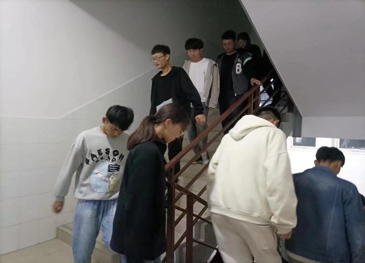 学院组织学生模拟了发生火灾时紧急疏散演练。演练中,同学们低头弯腰、不惊慌、不推挤、无踩踏、选择最安全的逃生路线逃生,到达了理想演练效果。通过消防逃生演练与消防知识讲解,学生们全面了解了消防法律法规、防火、灭火和疏散逃生常识,增强了大家的防灾减灾意识和自救能力。
