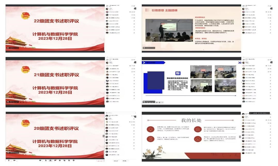 考核采取“现场述职+线上述职+总结点评”的方式进行,述职时,我院28位团支书全面总结回顾了本学期共青团实际开展工作等,展示了取得的成绩同时也深入刨析了存在的不足,最后较为全面的阐述了下学期工作思路。