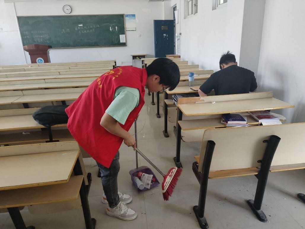 (通讯员 王占洲 王恩祺)为给同学们打造干净整洁的学习环境,2024年5月15日,我院青年志愿者协会在会长曹茂琦的带领下,对10号教学楼进行了卫生清洁的志愿服务活动。