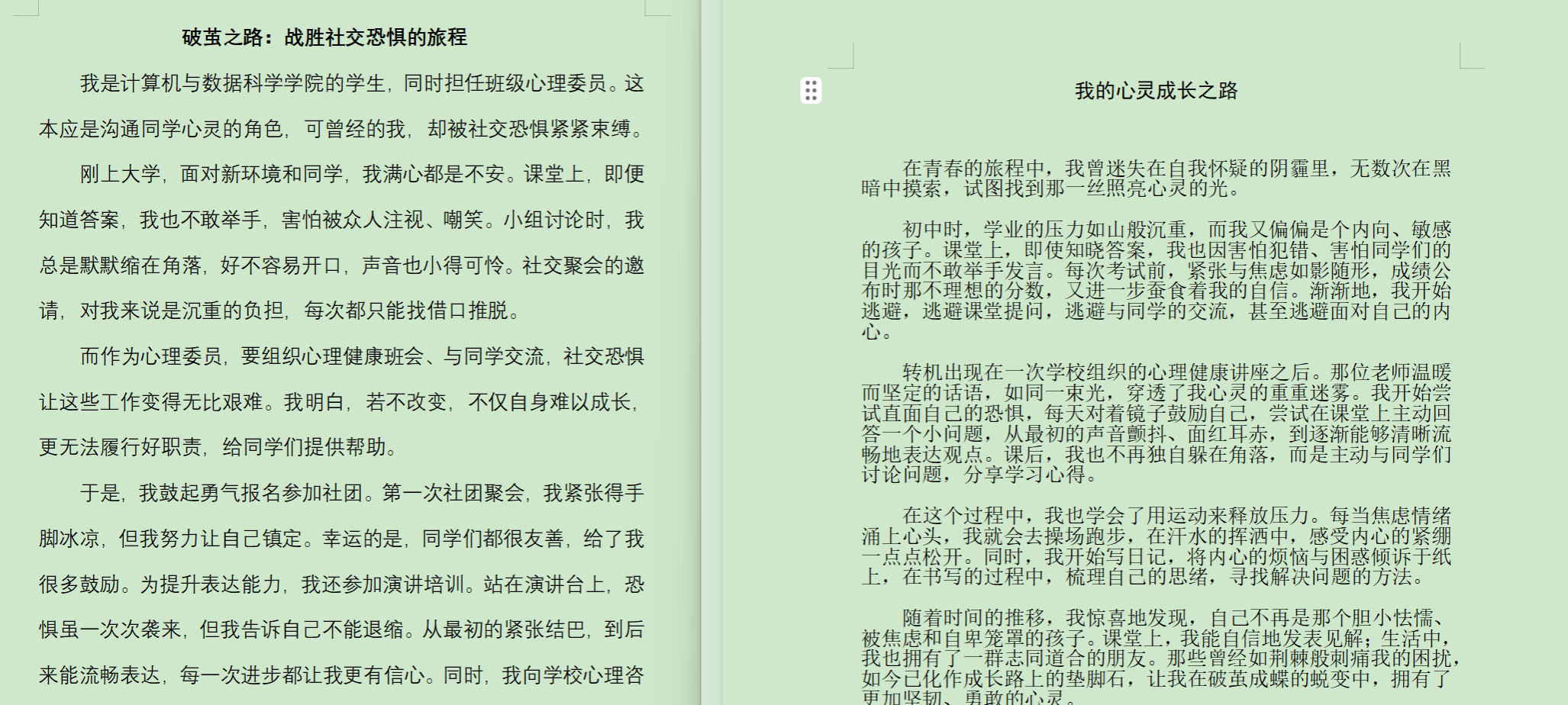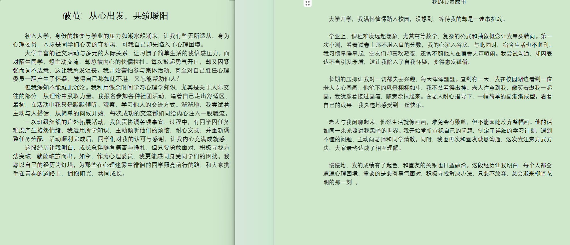 活动以趣味互动与文化传承为主线,线下举办了心理茶话会巧妙引入“心有灵犀一点通”“松鼠与大树”互动游戏,通过心理教师引导的深度话题讨论,帮助学生疏解假期焦虑情绪。随后,线上开展了“心灵自画像”“心灵拼图”主题绘画接龙比赛,既激发团队协作意识,又为学生提供艺术疗愈空间。知识赋能方面,“云端”心理知识竞赛以心理学理论、情绪管理技巧等为内容,借助数字化平台实现寓教于乐,“我的心灵故事”征文比赛则通过文字载体,引导学生记录成长感悟与亲情体悟,构建个性化心理成长档案。