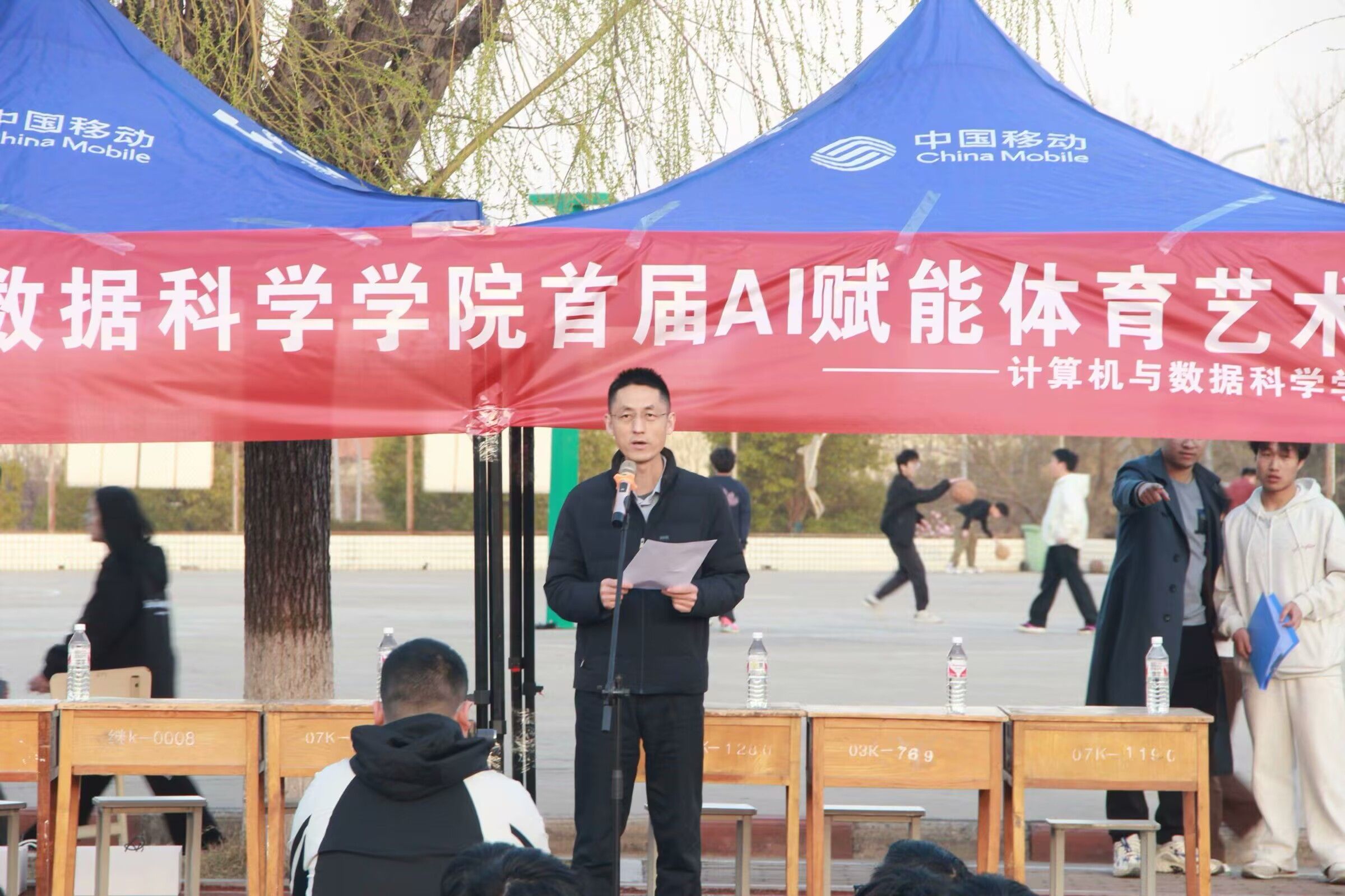开幕式上,张凯代表学院领导班子致辞。他首先向本届体育艺术节的开幕表示热烈祝贺,并对全体工作人员、运动员及裁判员的辛勤付出致以诚挚感谢。张凯在致辞中提出三点期望:(1)以AI赋能各项赛事,为体育竞赛注入新活力,提升赛事公平性与观赏性;(2)以科技激发艺术创新,借助AI生成技术、VR虚拟现实等工具,为艺术创作增添新魅力,为校园文化注入新亮色;(3)以安全为赛事底线,全体运动员要牢固树立“安全第一”意识,严格遵守比赛规则,服从裁判指挥,做好赛前热身与赛后放松,避免运动损伤。他希望全体运动员发扬不甘示弱、顽强拼搏的精神,赛出风格、赛出水平、赛出友谊,充分展现计算机学院学子昂扬向上的精神风貌!