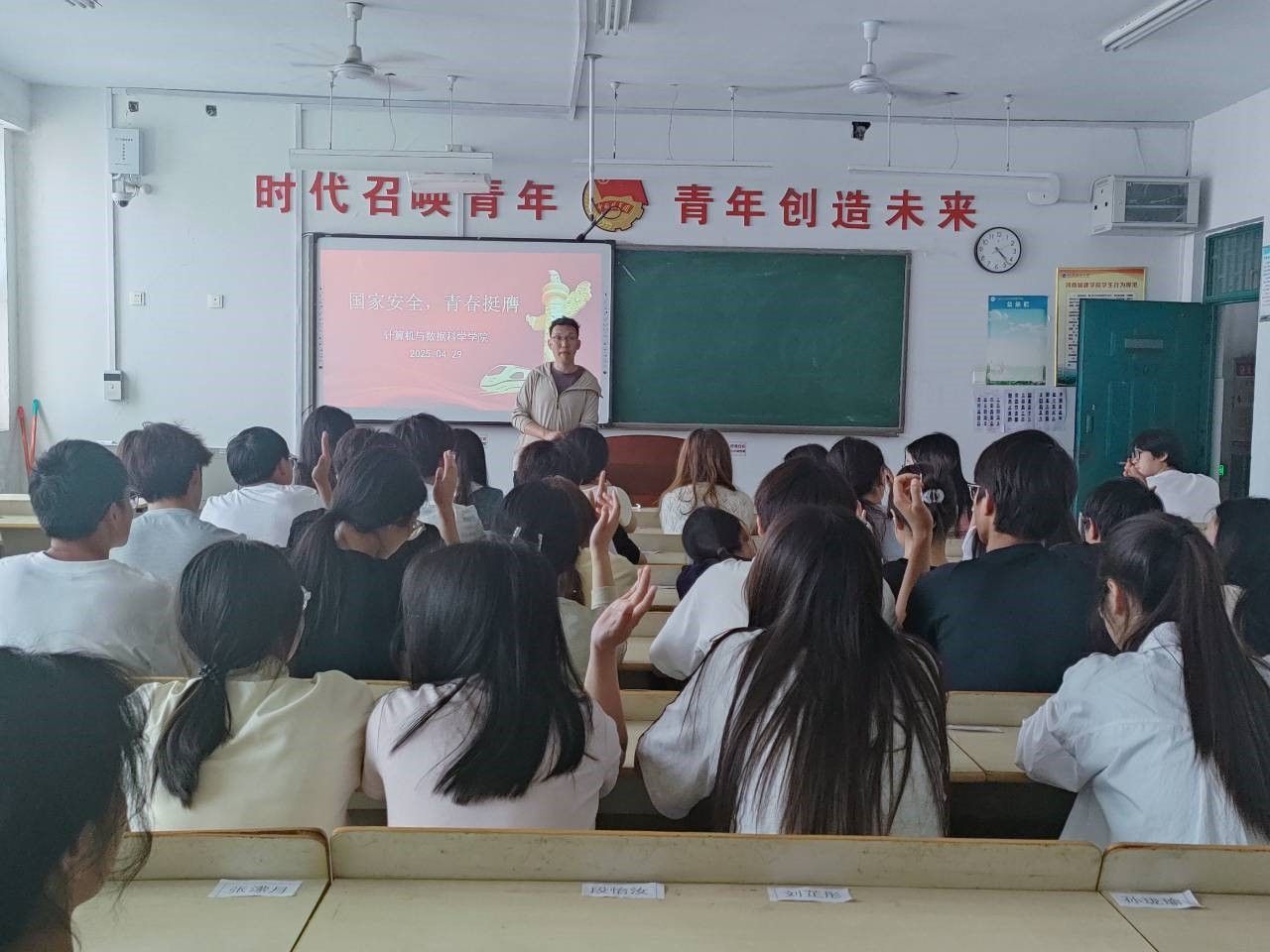 活动现场,学院团委书记王占洲围绕“什么是国家安全”“百年变局下的安全挑战”“青年学子的历史担当”三个维度,对国家安全相关内容展开系统讲解。他通过剖析数据安全、网络安全等典型案例,深入阐释了国家安全是国家发展基石、人民幸福根本保障的深刻内涵。同时,结合当前国际局势中科技竞争、信息攻防等前沿领域,着重强调新时代青年要立足专业所长,在人工智能、大数据安全等关键领域勇攀高峰。
