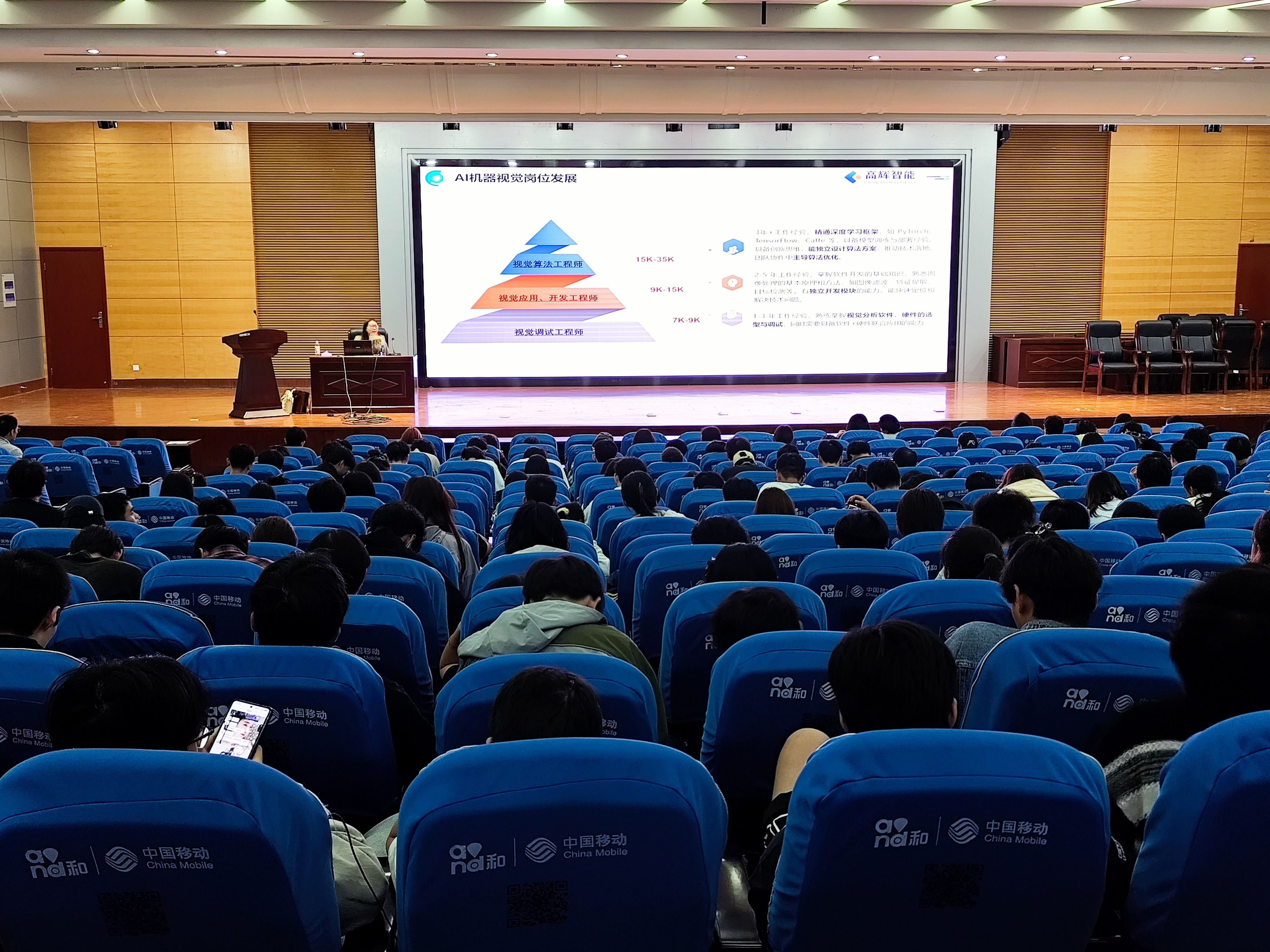 (通讯员 任恒)2025年9月28日,我院邀请河南高辉智能科技有限公司职业规划部资深行业专家周玉洁在行政楼报告厅,为广大学子作题为《AI 机器视觉行业介绍与就业指导》的报告。副院长张凯,就业专员郭帅旗与 400 余位同学参加报告会,报告会由张凯主持。