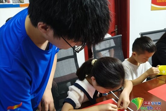 图为AI星辰志愿服务队指导孩子们制作国旗(李秋月 供图)