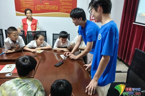 图为AI星辰志愿服务队在为孩子们进行实验演示(李秋月 供图)