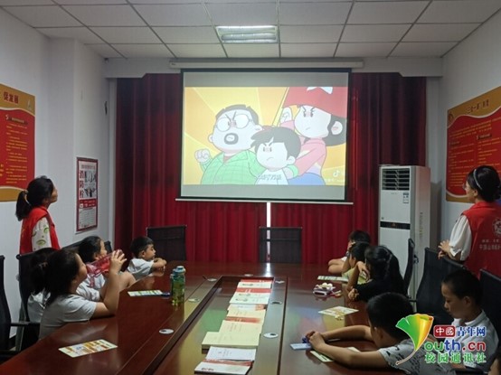 图为实践团成员为孩子们讲解防溺水知识(李可心 供图)