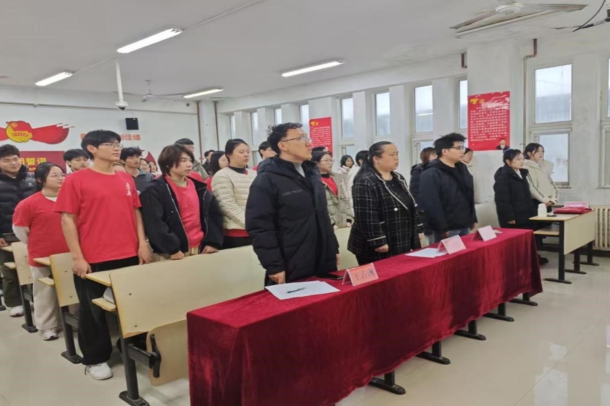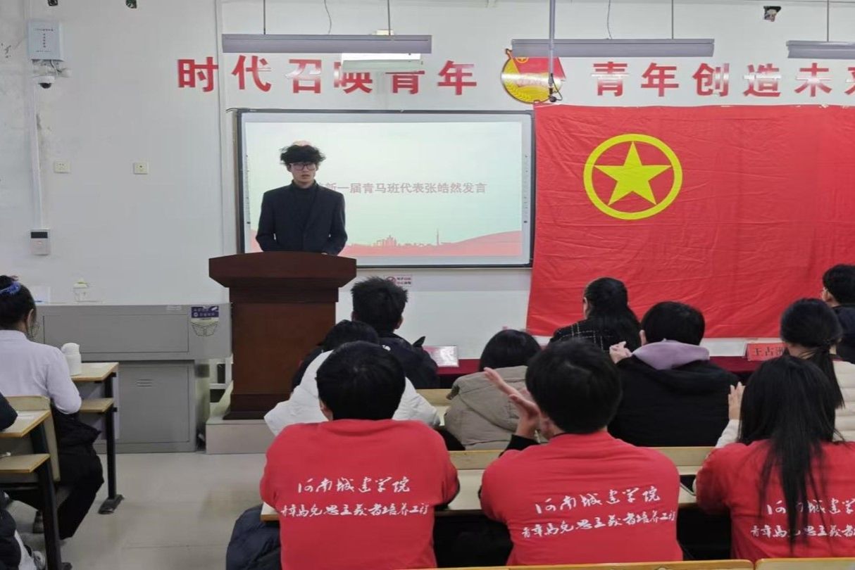 首先,王占洲全面总结并回顾2024级青马班的学习历程,肯定学员成长,为结业学员代表授证。赵永锋对表现优异的学员予以表彰及颁发证书。优秀学员代表熊可欣发言,回顾了在青马班中深化理论学习、参与实践锻炼的点滴,感恩学院搭建的成长平台,并表示将以所学践行青年担当。随后,2025级青马班开班典礼正式开启。张星在寄语中勉励新学员“筑牢信仰之基、锤炼过硬本领”,并为青马班授旗。学员代表张浩然发言表态,在未来的学习中以“学思践悟”为核心,在理论学习中筑牢思想根基,在实践锻炼中增长本领才干,真正成长为有理想、敢担当、能吃苦、肯奋斗的新时代青年。在庄重的仪式里,新老学员共同重温入团誓词,以铿锵誓言传递初心。仪式在共唱团歌中结束。