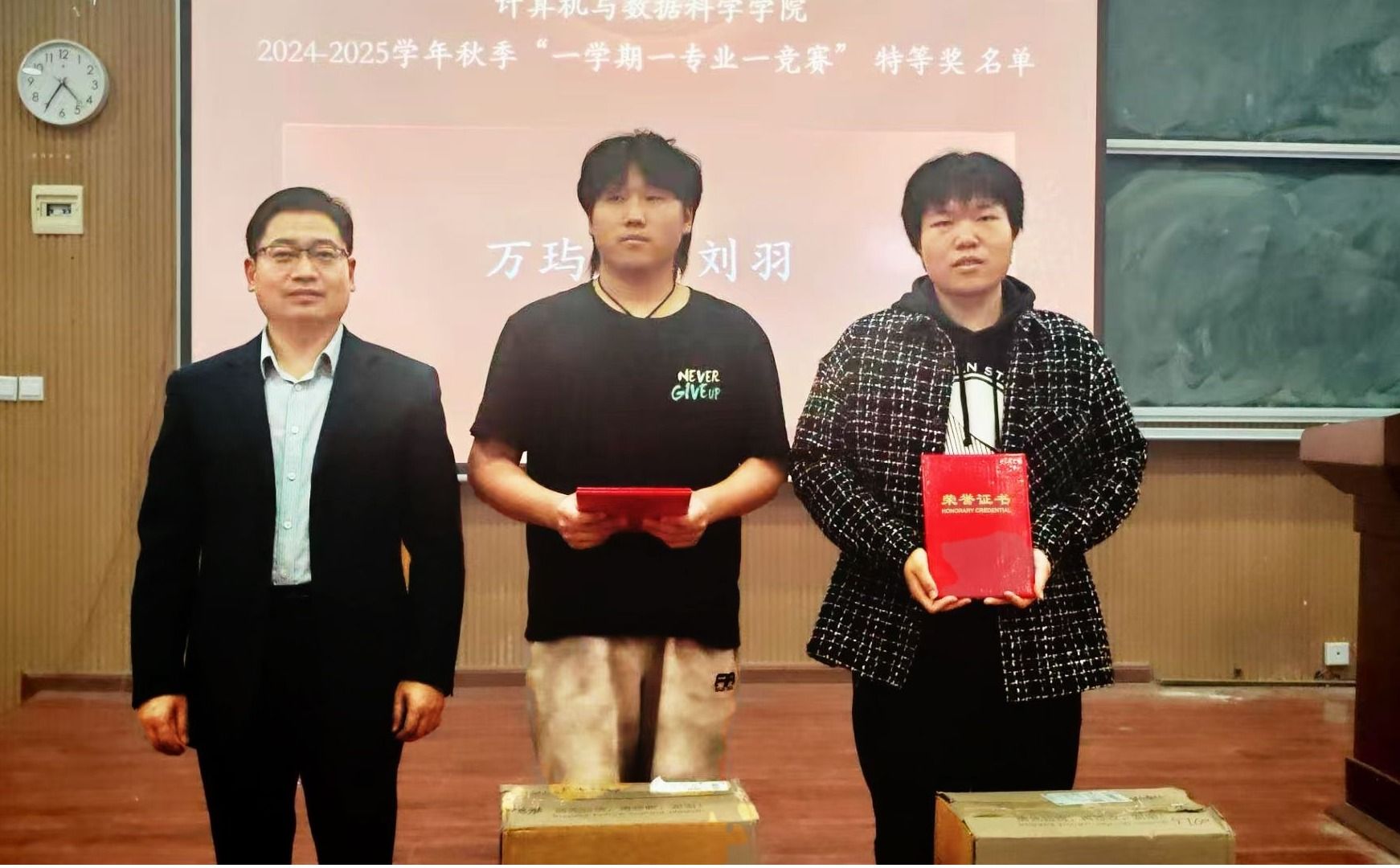 在表彰环节,获奖选手依次上台领奖。优秀指导老师范勇峰和获奖学生代表万玙玺分别做经验分享,他们从备赛策略、团队协作、创新思维等方面进行了深入交流,为即将参赛的师生提供了宝贵经验。